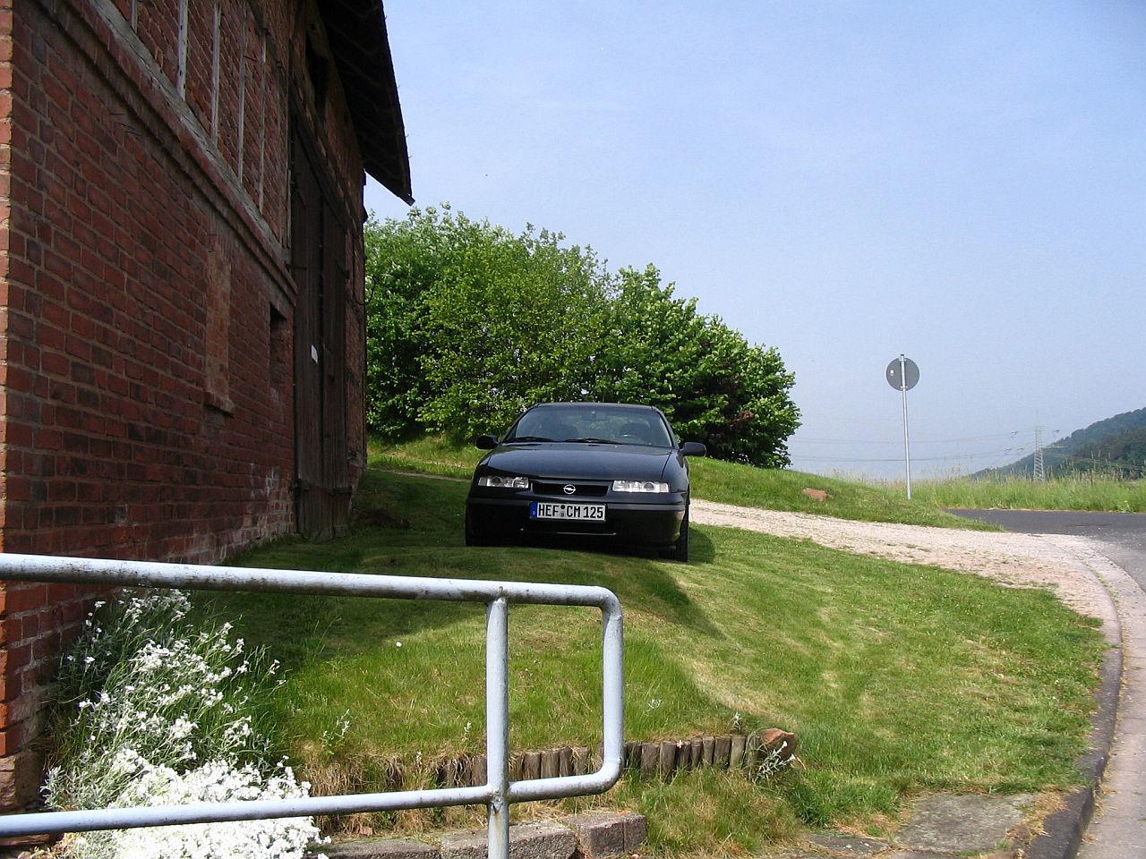 • Es ist zwar grade die Heckschürze ab, weil ich das Verstärkungsblech von der Schürze, da die Vorbesitzerin damit anscheinend beim Einparken gegen ein Hindernis gefahren ist, grade gebogen habe und ich jetzt den Rost daran beseitige um es anschließend lackieren zu können, aber da der Cali ausnahmsweise mal kurz auf dieser schönen Grasfläche stand, hab ich die Gelegenheit genutzt und mal ein paar Bilder gemacht.