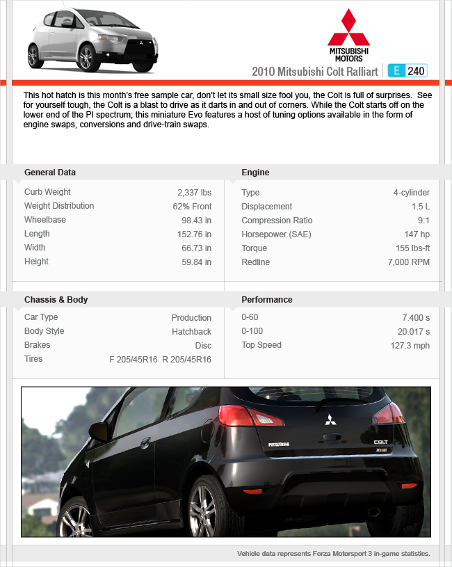 Das Pack erscheint am 8. Dezember 2009 und wird 400 MS Points kosten, was umgerechnet ca. 4 Euro sind. Das Pack besteht aus den folgenden 10 Autos: