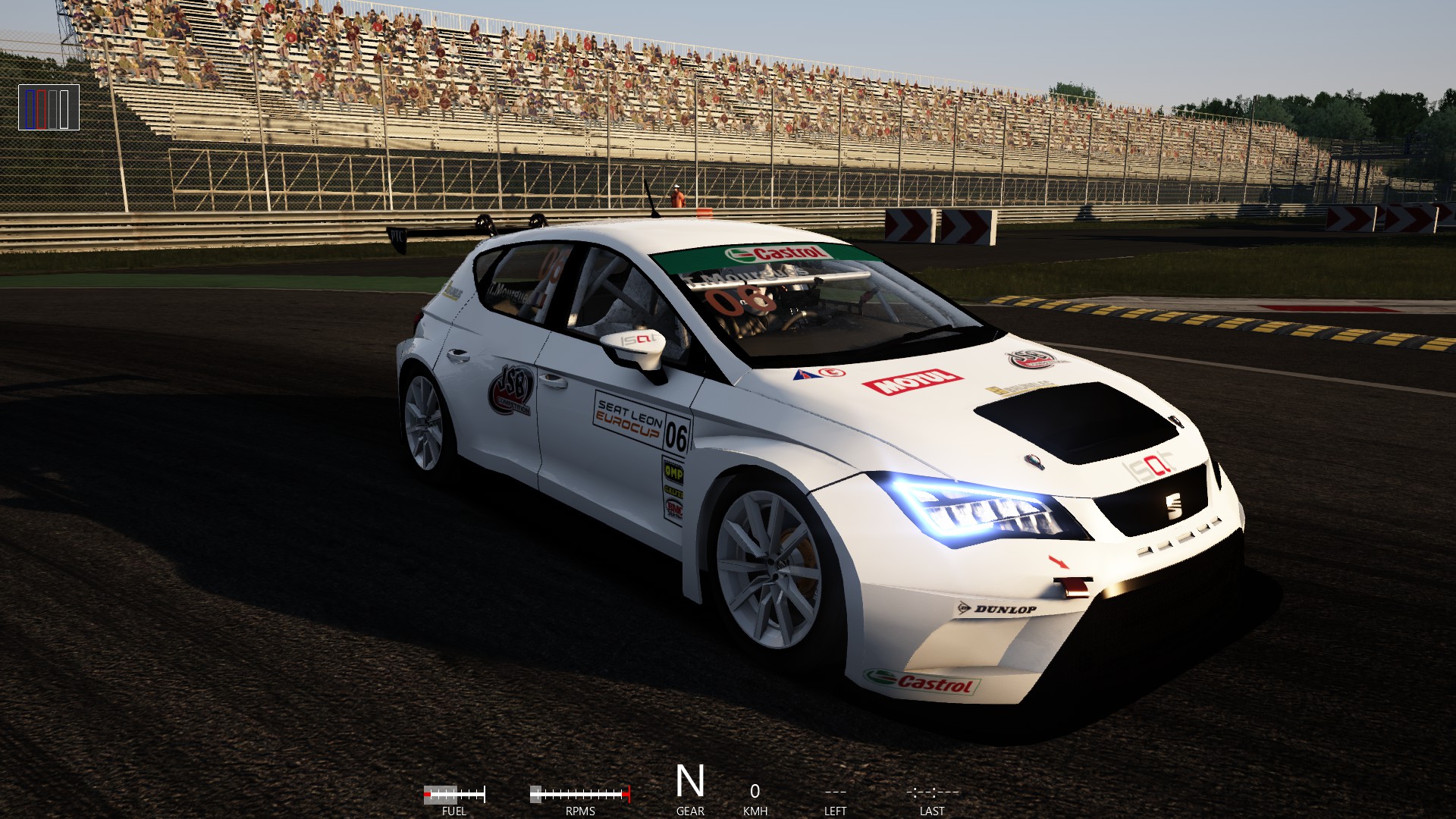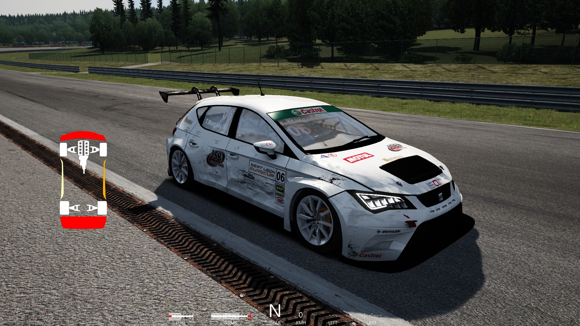 Das Fahrverhalten gefällt mir eigentlich recht gut. Das Standard Setup ist sehr konservativ und auf Fahrbarkeit ausgelegt. Hier zeigt sich keine Anstalt zu übersteuern sondern nur das typische Frontkratzer Untersteuern am Kurvenausgang. Mit ein paar Kniffen im Setup bekommt man den Wagen aber recht schnell etwas dynamischer und man kann das Heck mit Gas und Bremse besser steuern. Die Bremse erscheint mir teilweise etwas schwach, aber sobald man sich dran gewöhnt hat trifft man auch die Bremspunkte. Etwas gewöhnungsbedürftig ist der Schaltpunkt. Man sollte eher dem Display im Cockpit glauben als der Schaltanzeige vom HUD, da zum Ende des Drehzahlband einiges an Leistung verloren geht.