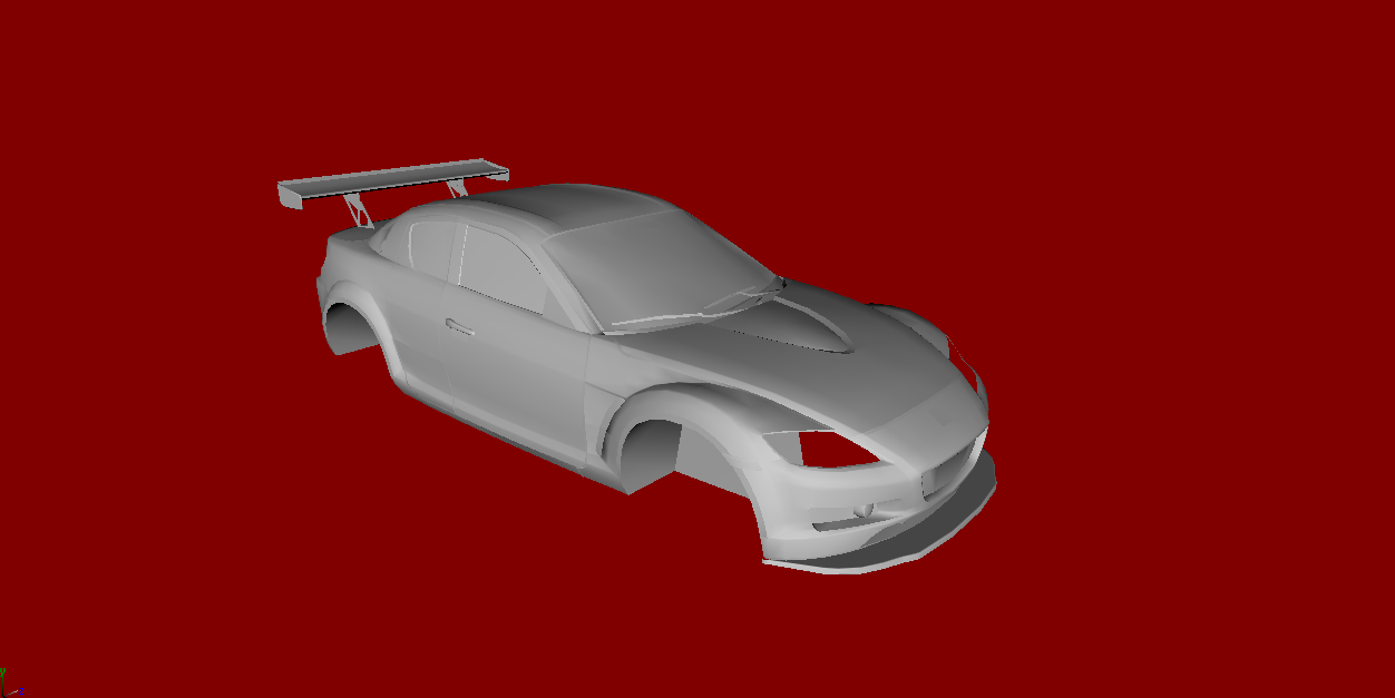 erst hab ich das Blueprint vom RX8 (Straßenversion)genommen und dann hab ich die das Straßenmodel in eine Rennversion umgewandelt.
