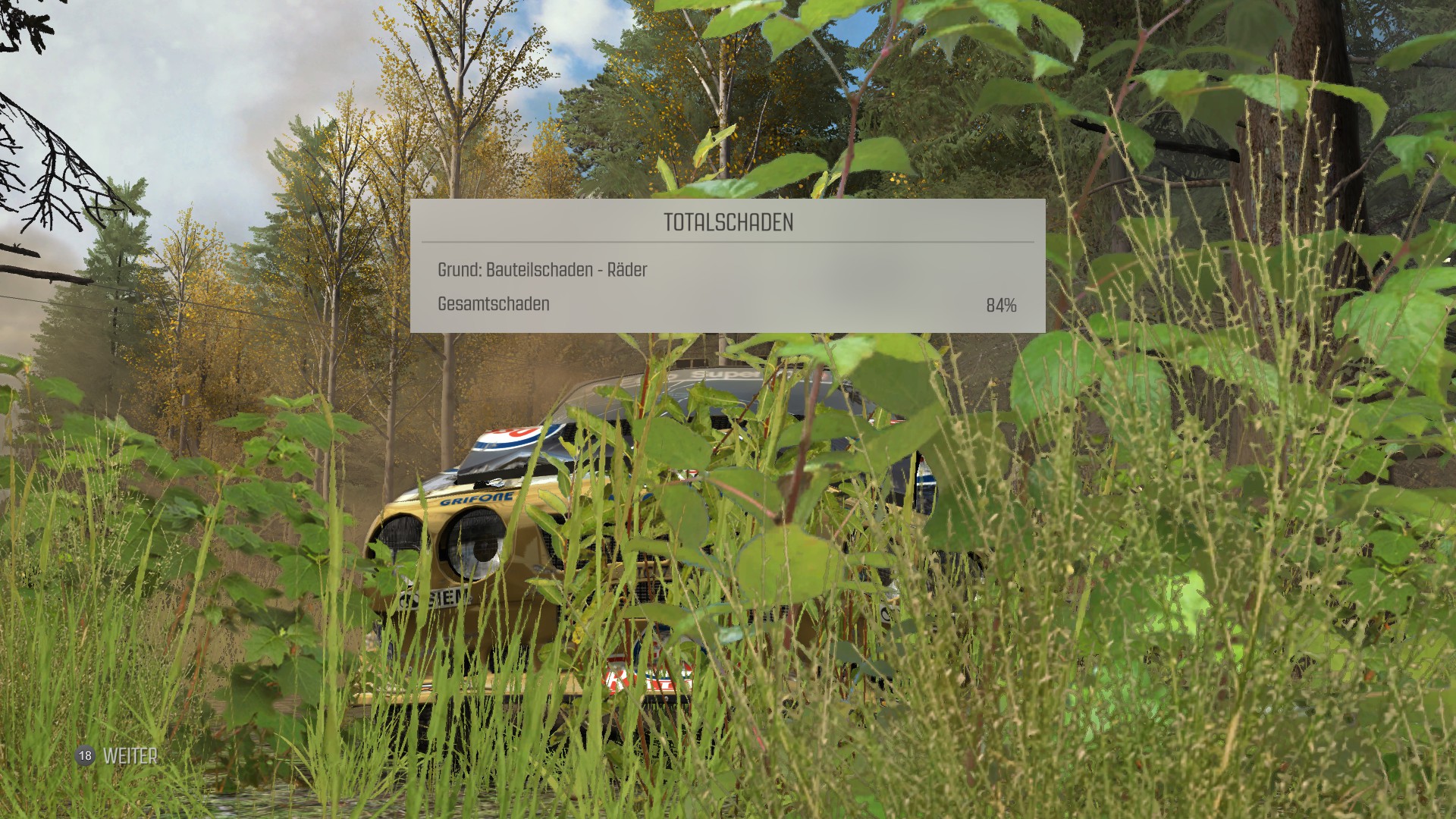 Stage 4 Schöner Einschlag. Frontal gegen den Baum. Kühler im Eimer...am Ende der Stage die komplette Reparaturzeit in den Kühler gesteckt